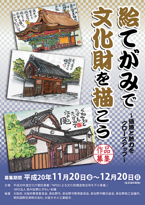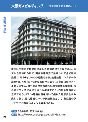 大阪府登録文化財所有者の会では、2008年8月に「大阪府の登録文化財―活用と保存が個性あるまちをつくる」を発行しました。その際に掲載できなかったもの、ならびにそれ以後に新たに登録されたものを加えて、今回、第2版(2012年版)を発行いたしました。この本をポケットやハンドバッグに入れて持ち歩き、登録文化財建造物に親しんでいただく切っ掛けにしていただければ幸いです。ご希望の方は、下記までご連絡下さい。 連絡先:大阪府登録文化財所有者の会事務局(寺西興一方) 電話06-6624-7618 メールteranishikouiti@yahoo.co.jp 頒布価格:500円(送料別) |